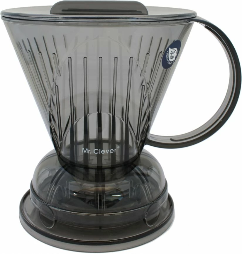 The Clever coffee dripper is made of 100 % BPA free plastic and comes with a lid and a coaster.