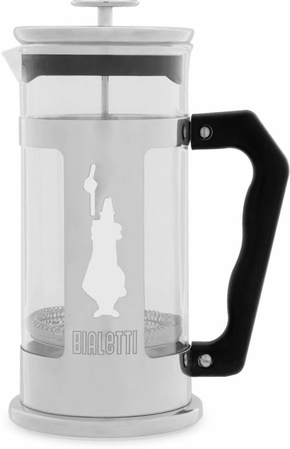 Bialetti Preziosa is an elegantly designed French press with a stainless steel frame, featuring the Alfonso Bialetti figure. With this French press you can quickly brew several cups of delicious coffee.