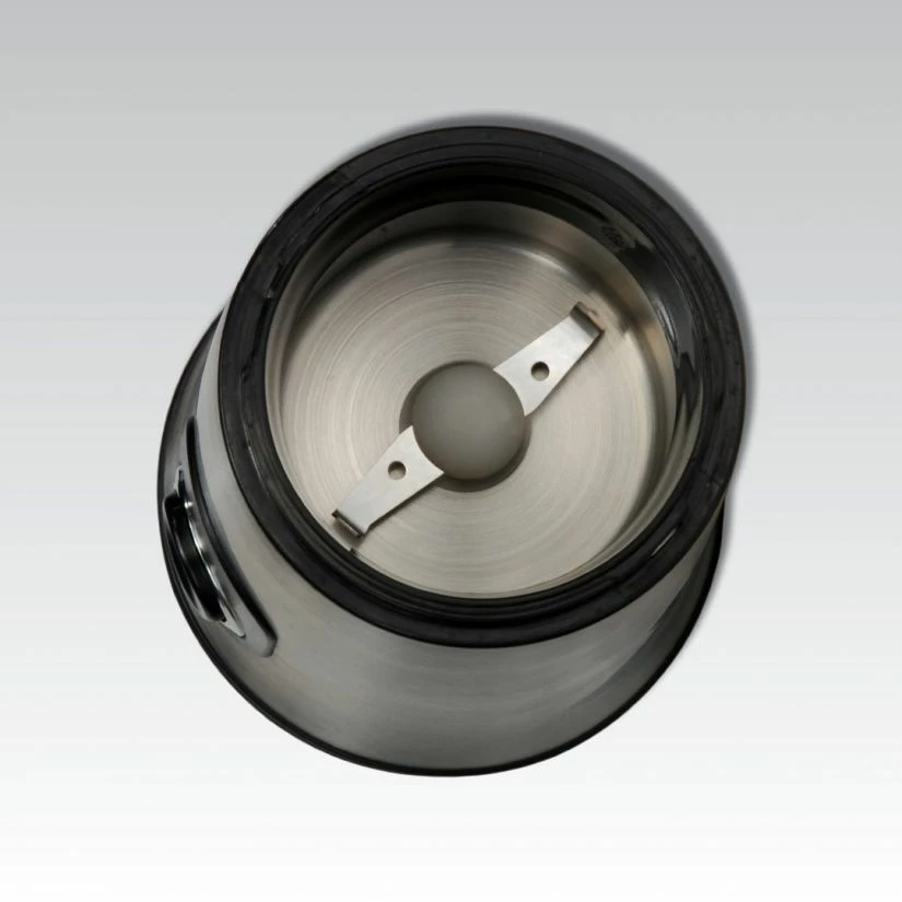 Pour the beans (max. 50 g) into the container and press the grinding button to start the grinding blades. Once the desired grinding coarseness has been reached, release the grinding button. The longer the grinding time, the finer the grinding. You can follow the grinding via the see through lid.