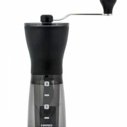 The grinding coarseness is adjusted by turning a knob located below the burrs. The resulting ground coffee is even both when grinding for alternative methods and for espresso, which makes the Comandante unique compared to other manual coffee grinders. In addition, due to its physical and chemical properties, the burrs are neutral in terms of the effect on the taste of coffee.