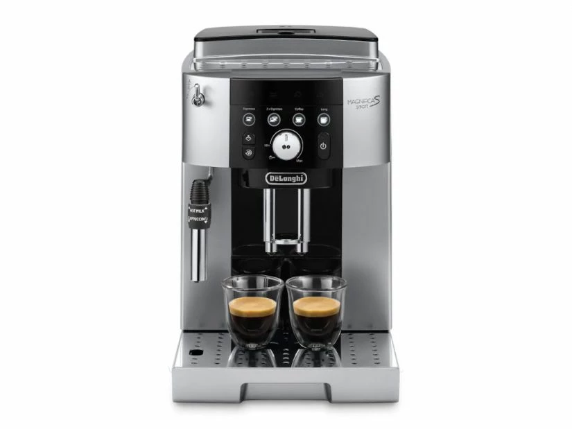 The compact bean to cup DeLonghi Magnifica Smart S automatic coffee machine delivers professional results and the freshest coffee. Deliver two espresso drinks at once with twin delivery.