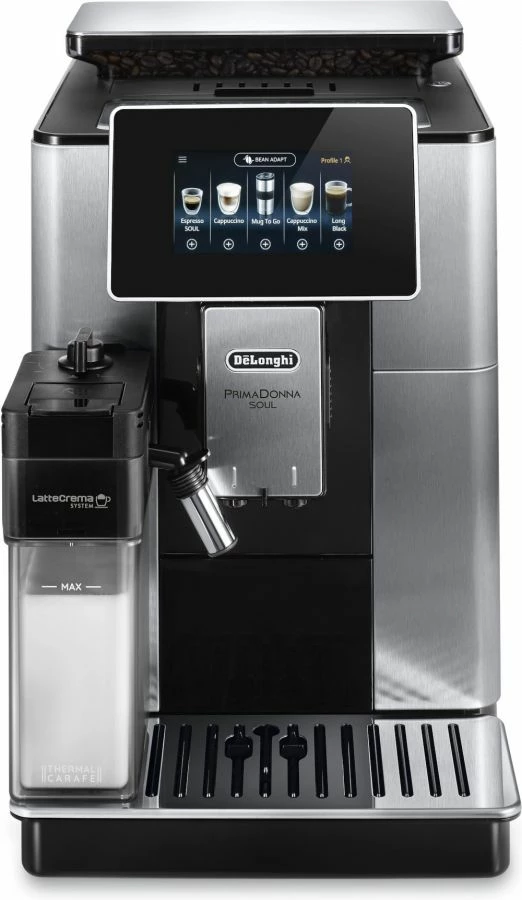 The new DeLonghi ECAM610.75.MB PrimaDonna Soul fully automatic coffee machine lets you taste the true aroma of your favourite beans.