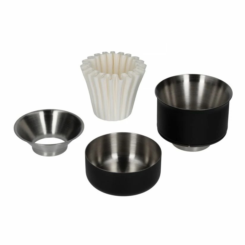 The Stagg Dripper includes a built-in ratio aid to help guide you through the correct amount of grounds to use for 1-2 servings in case you’re on the run or don’t have a scale. It also acts as a handy drip cup in case you aren’t near your sink or track.