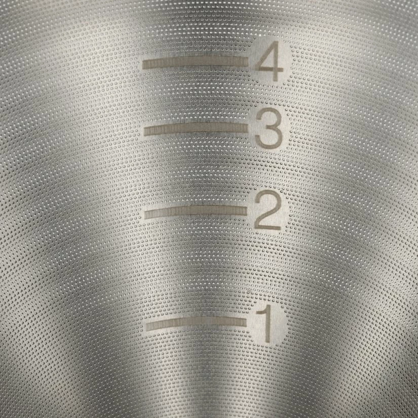 Hario Double Mesh Metal Dripper V60-02 made solely of stainless steel. The metal filters allow the coffee oil to slowly pour through along with a rich flavour. In the dripper two finely etched mesh filters overlap.