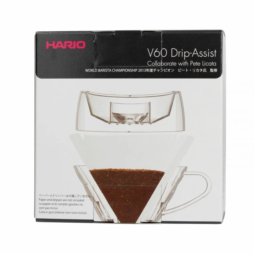 The V60 Drip-Assist is created by Hario in collaboration with Pete Licata, 2013 world barista champion. The form of the Drip-Assist resembles showerheads used in filter coffee machines. Its function is to evenly distribute the water to the surface of the ground coffee, thanks to which the brewing process can be controlled more thoroughly and thus more consistent.