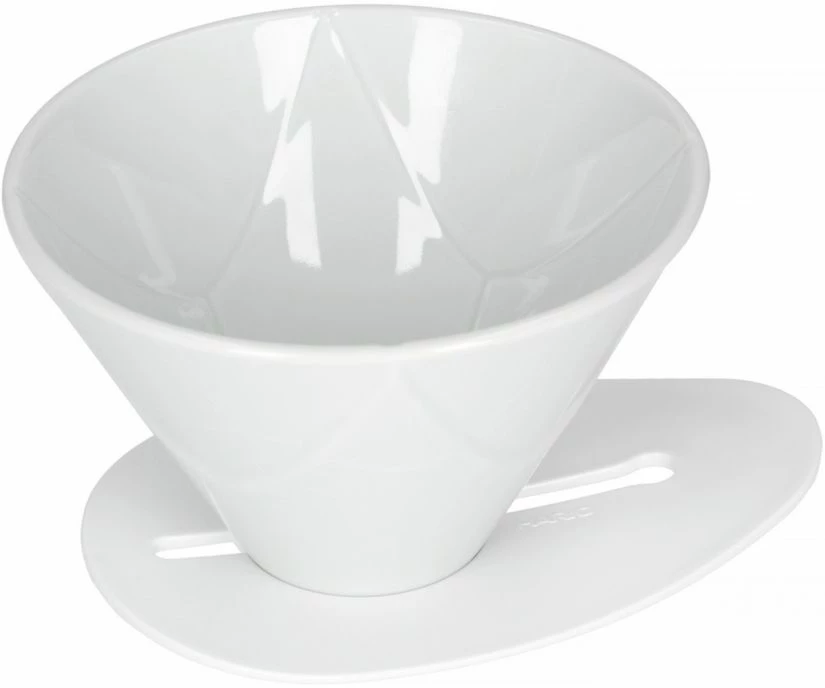 The Hario V60 Dripper Mugen lacks internal ribbing, so paper filters stick to it as coffee flows down the star-shaped grooves to slowly brew. The holder is removable, so you can also place the Mugen dripper as such on a stand to brew.