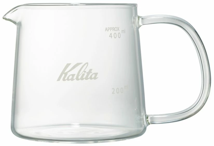 A classic Kalita glass jug with a capacity of 400 ml and a scale in 200 ml steps. Suitable for microwave and easy to clean. The jug has a glass handle for easy handling.