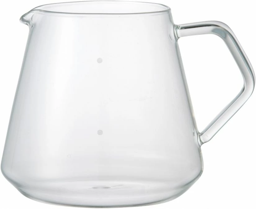 The Kinto SCS-S02 Coffee Server with measurement marks that indicate 2 cups or 4 cups of dripped coffee (300 ml and 600 ml). The smaller server only has marking for two cups (300 ml). Perfect for pour over coffee!