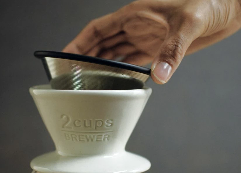 The steel filter has small holes that will allow the coffee oils to enter through. The coffee gets a more fullbodied character compared to coffee brewed with a paper filter.