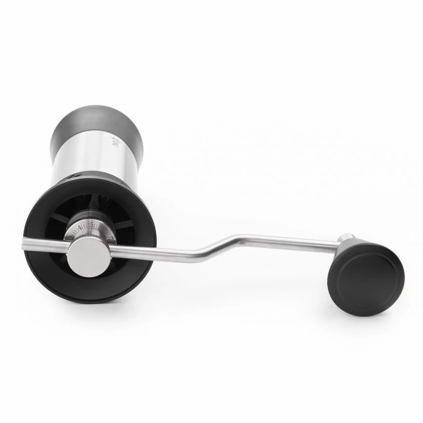 The Kinu M47 Phoenix coffee grinder has a stepless adjustment with a fine thread (M10 x 0.5) and 50 subdivisions. For each division, you adjust the grinding distance by 0.01 mm.