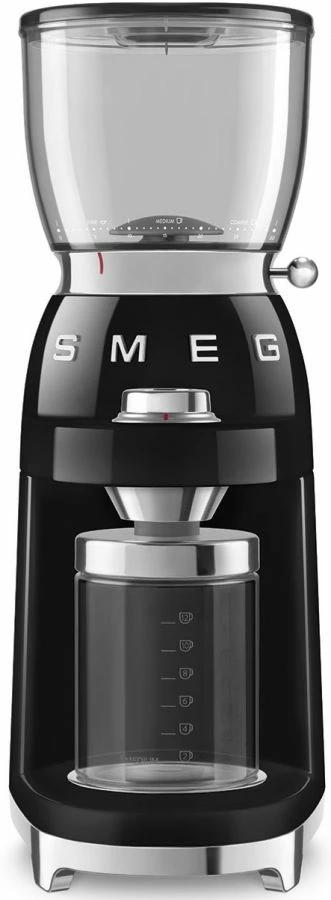 Smeg CGF01 50’s style Coffee Grinder with a die-cast aluminium body and conical stainless steel grinders for a homogeneous grind which preserves all the delicious coffee aromas without altering the flavour.