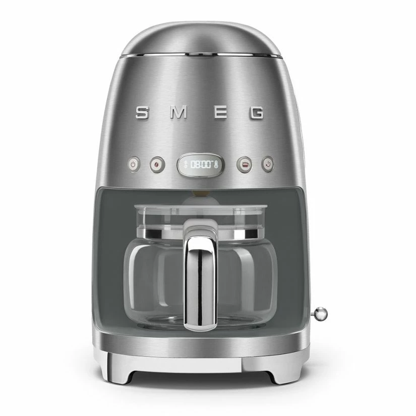 The retro style Smeg DCF02 Drip Coffee Makers allow you to prepare deliciously aromatic, richly-flavoured coffee to be savoured slowly, the ideal companion for a hard day at work. The coffee maker includes a sleek 10-cup capacity glass carafe.