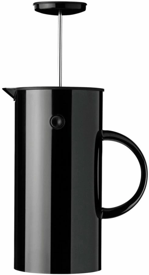 The Stelton EM press coffee maker holds eight cups, and its double walls keeps the coffee warm for longer. Turn the lid to pour the coffee and turn it again to close.