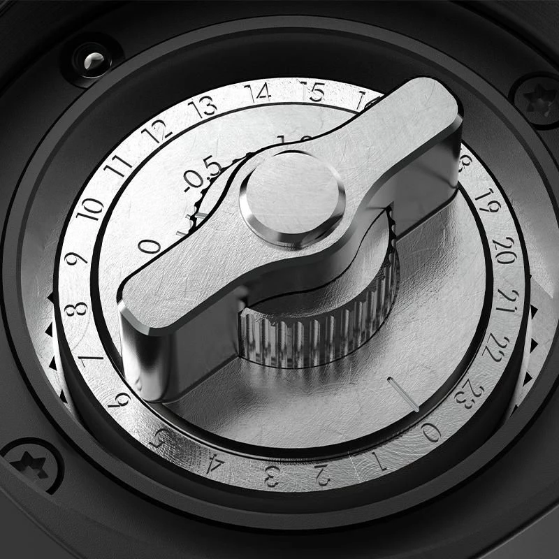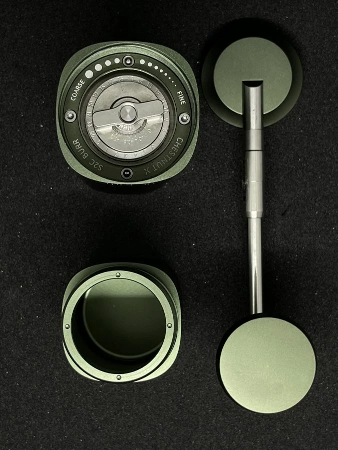 The Chestnut X coffee grinder has 24 separate grind adjustments with a secondary dial that gives you the ability to fine tune the grinder by another 5 fine adjustments per notch. In total with both dials you’ll have 120 levels of adjustment possibilities.